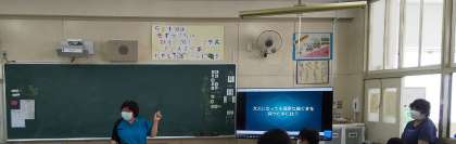 本日5・6時間目に「全国小学生歯みがき大会」を5年1組と2組で開催しました。歯の健康を守るために、歯磨きとデンタルフロスでしっかりと歯垢を落とすことが大切だと正しい歯の磨き方なども学習しました。特にコロナがまだまだ終息しない中、病気にならないために、どうすれば健康な歯と歯茎が維持できるのか、ビデオと学校医の宮本先生からのお話で丁寧に教えていただくことができました。