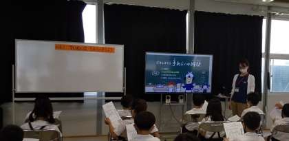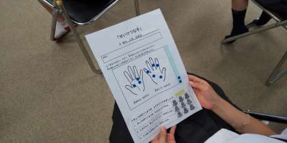 保健室の先生の指導の下、2年生の手洗い指導がクラスごとに開催されました。衛生習慣化プログラム「みんなで手あらい」を活用して、どんな時に手を洗うのかと、正しい手洗いの仕方についてみんなで学習をしました。