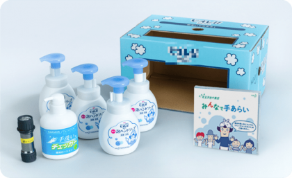 (2)正しい手洗いを学ぶ前に、一度、泡ハンドソープで手洗いをしてみます。