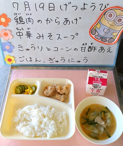 1学期の給食は、4月9日から始まって7月19日までです。68回ありました。最終日の給食は、中華料理です。子ども達は元気いっぱい、「おいしい」とモリモリ食べていました。2学期の給食は、8月26日(木)からの予定です。よろしくお願いいたします。