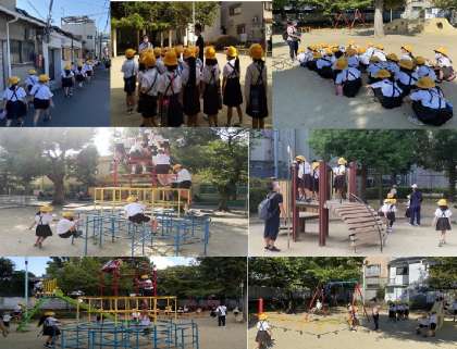 1年生が地域の二つある公園に出かけました道中の歩行・公園での施設・道具を使っての遊び方など担任の先生の指導を受けながら探検に出かけることができました。外で活動するにはよい季節となりました。