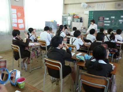 歯科衛生士さんにきていただき、むし歯や歯周病などの生活習慣病について学習しました。歯垢染色し、よごれを確かめ、歯みがきの仕方を教えてもらい、よい歯みがきの仕方を体験しました。