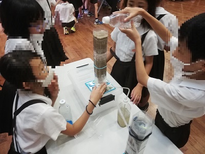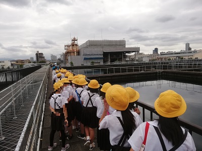 延期となっていた社会見学「柴島浄水場見学」に行くことができました。水の汚れが沈砂池・ぎょう集沈でん池・中オゾン接触池・ろ過池などを経てきれいな水になる様子を見学しました。とても広い浄水場に驚いていました。見学後、水のろ過実験をグループに分かれて試してみました。生活にとても大事な水に携わっている人たちの働きぶりも分かり良い勉強になりました。水道記念館前の庭園で楽しそうにお弁当を食べていました。