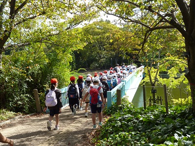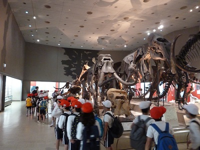 待ちに待った遠足行事が実施できるようになりました。朝から2年生の子どもたちは、気分が盛り上がっていました。自然史博物館内にあるマンモスの大きさに驚き、恐竜の大きな足跡に触れてみて、興味津々で展示物をみていました。植物園内では秋の草花を観賞したりどんぐりを拾ったりして自然と親しみました。大池をバックに楽しくお弁当も食べました。