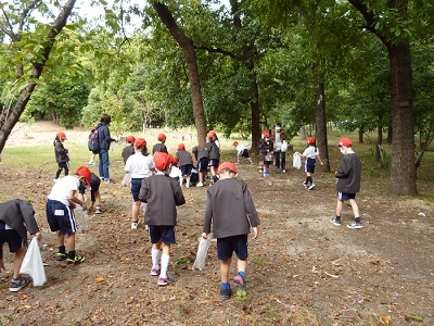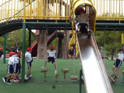 小学校では初めての遠足となる1年生。電車の中も歩行の仕方もマナーよく活動できました。公園内では、どんぐり拾いや虫探し、遊具遊びに夢中になって楽しんでいました。