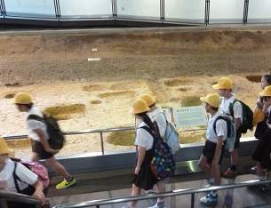 朱雀大路を通りながら広大な都あとを歩き、昼食の場所に着きました。遠くに「大極殿」をながめながらグループに分かれてお弁当をおいしく食べました。木陰ではさわやかな風がふき、お天気に恵まれた遠足でした。