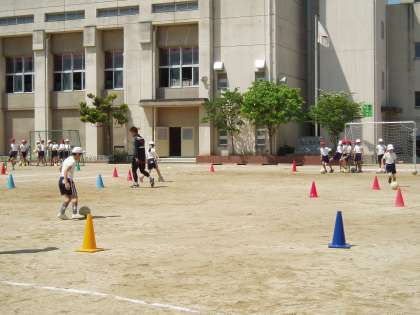 セレッソのチームコーチが来校してサッカーの楽しさを学習しました。手をつないで鬼ごっこをしてディフェンスやオフェンスの基礎練習をしたり、チームでゲームをしたりして楽しい学習になりました。最後コーチを交えてみんなで記念写真をとりました。