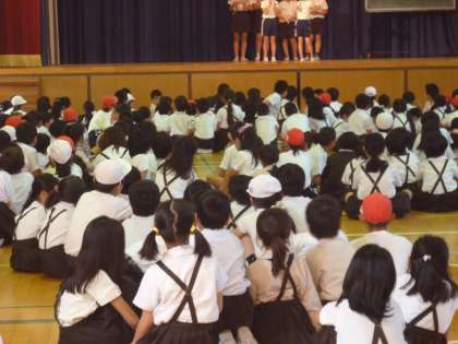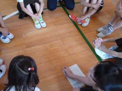 たて割り班の神路っ子グループでの集会活動が今日から始まりました。集会委員会主催の「ジェスチャーゲーム」でした。低・中・高学年に応じた問題やみんなで考える問題など工夫されたゲームを班で協力して考えていました。集会委員会の人たちのユニークなジェスチャーに笑いもあり、楽しい集会になりました。