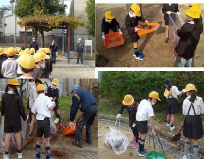 地域の公園、2か所に分かれて2年生が公園清掃に出かけました。地域の方と一生懸命に掃除をしていました。たくさんの落ち葉を拾い集めて、きれいな公園になり、満足そうでした。「また、今度もやりたい。」と地域の方にお話していました。