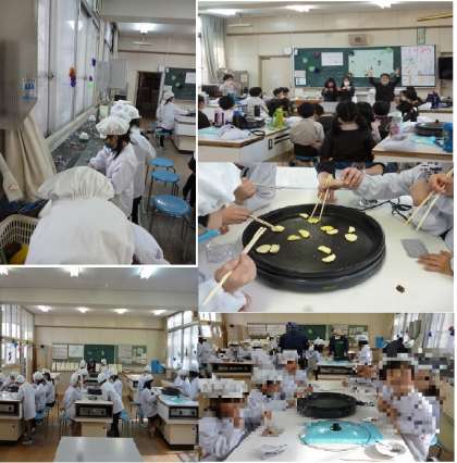 2年生の子どもたちが、1学期から育てていた「サツマイモ」の収穫を11月末にしました。たくさんのいもが土の中から掘ることができ、喜んでいました。今日、収穫を祝う『おいもパーティー』を行いました。おいもの歌でパーティが始まり、盛り上がったところで、焼き芋づくりです。ホットプレートでおいしく焼きあがった焼き芋をみんなで食べました。家庭科室の中が笑顔いっぱいになりました。