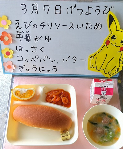 3月の給食には、春を感じる食材がいろいろ登場します。今回は、上品な甘さとほろ苦さが特徴のはっさくです。後日、よもぎだんごや菜の花も出ます。子ども達は「全部食べることができたよ」「苦かった」「おいしかった」と味わって食べていました。