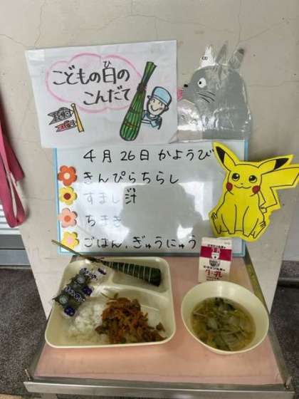 今日はこどもの日の献立でした。ちまきがとっても美味しかったです!
