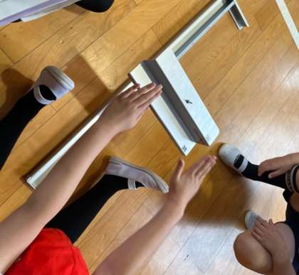 マット運動をしながら、体力測定の握力と長座体前屈にも取り組みました。