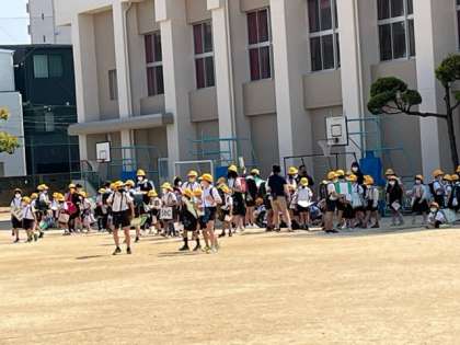 今日は、地区別集団下校でした。6年生が、1年生を地区ごとに迎えに来て、集合した後、下校となりました。