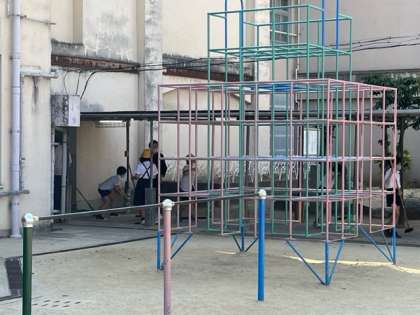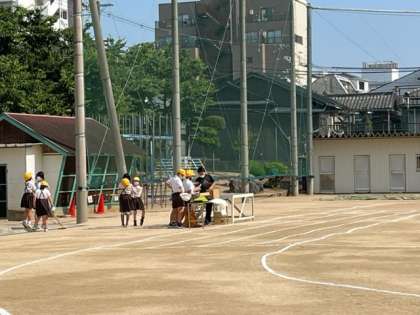 暑い中、委員会の皆さんが運動会の準備をしてくれています。