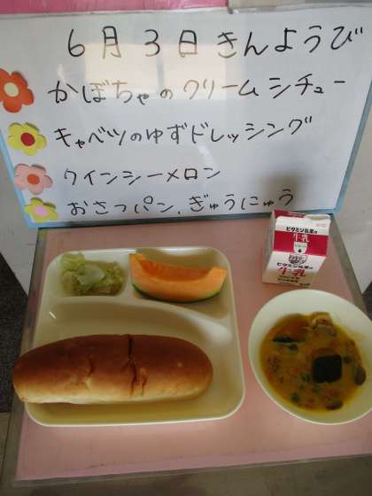 今日の給食では、メロンが出ました!