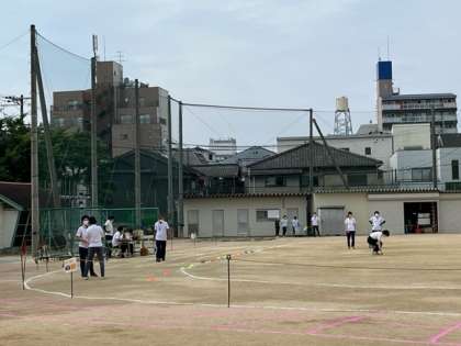 朝から先生たちが、今日の運動会の準備をしています。