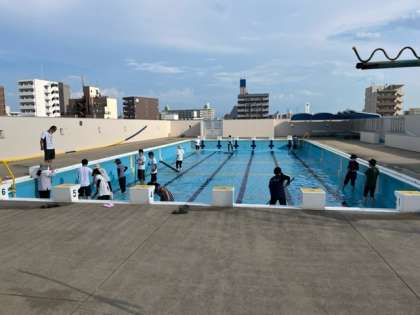 来週のプールに備えて、先生たちでプール清掃を行いました。