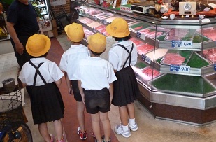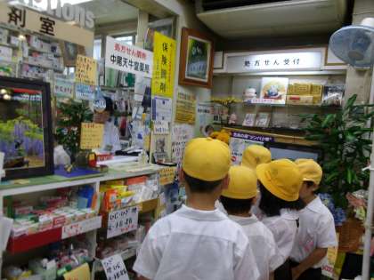 2年生が生活科「みんなのまち大好き」の学習で地域の商店街の探検にでかけました。大きく3つのゾーンに分けてグループで見学に行きました。店のようすを観察し店の人にインタビューして工夫しているところや苦労話をきき、調べました。学校にもどってから、調べたことをまとめていました。