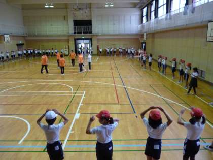 地域の民謡部の方々に来ていただき、ふれあい祭りや運動会で踊る「神路音頭」を教えていただきました。そのほかにも「ドンパン節」や「ドラえもん音頭」を教えていただきました。民謡部の方々の身振り手振りをまねして楽しそうに踊っていました。