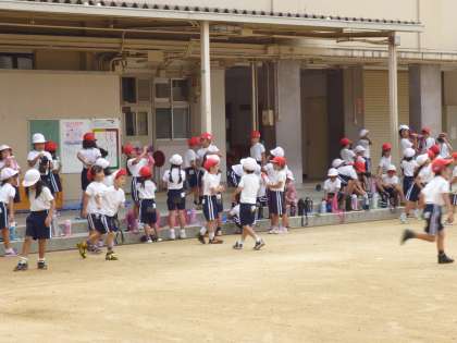 今週からいよいよ運動会に向けての練習が始まりました。児童は、運動会当日、保護者の皆さんにいい演技・競技を見ていただこうと頑張っています。まだ、暑い日が続きますので、練習の途中には必ず休憩を入れ、水分補給をさせています。