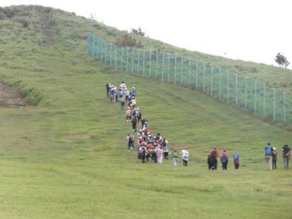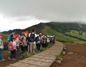 二日目天候も味方をしてくれたのか、登山ができるようになりました。まずめざすは、「高丸山」です。声を掛け合い高丸山の頂上を制覇しました。次は「鉢伏山」へチャレンジです。頂上付近は霧の中で見晴しはあまりよくなかったですが、みんながんばって登りきりました。