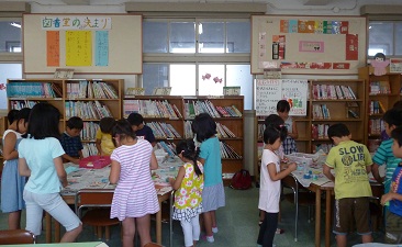 本年度も夏休みに3日間、図書館開放を実施しています。今年度は二日目にお楽しみとして栞づくりの時間帯を設けました。準備された材料を工夫してオリジナルの栞を制作しました。最後にラミネートしてもらってリボンをつけて完成させていました。とても楽しそうに会話しながら作っていました。