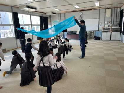 外部の方を講師にお招きして、1年生でわらべ歌の出前授業を行いました。