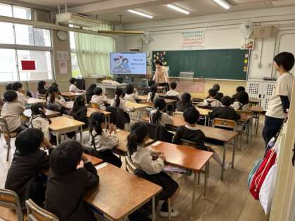 栄養教諭の先生より、小学校での給食についてお話がありました。