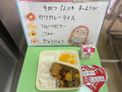 12日(水)は入学おめでとう献立で、ラッキーにんじんの日でした。