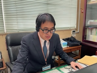 昨日の雨でグラウンド状態が悪いため、リモートで全校朝会を行いました。