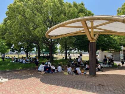 日陰で、お弁当タイムです。