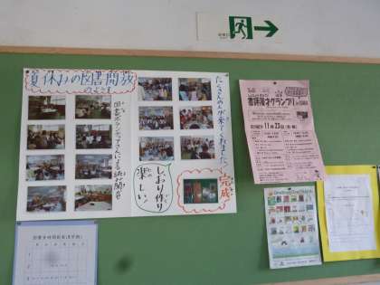 読書活動を活発にしようと夏休み中、教員全体で蔵書点検や新しい図書購入、図書室や準備室の環境整備を行いました。図書準備室は、調べ学習ができるような「学習室」に生まれ変わるようただ今整備中です。児童も本の移動を手伝ってくれています。図書室には畳スペースを作り、楽しい読書空間を演出しました。図書室入口の掲示板には、夏休みの図書開放のようすや『One Book One OOSKA』の募集を掲示しています。