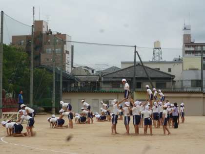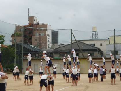 雨が続いてなかなか運動場で練習できなかった6年生の組体操。技の練習を体育館で繰り返して、いよいよ運動場での練習を本格的に始めました。体育館とはちがい、自分の位置に素早く動けず、笛の合図でそろわないところもありましたが、どんどんできていく達成感を子どもたちは感じているようです。本番は大技もみんなの協力で成功させてくれるでしょう。