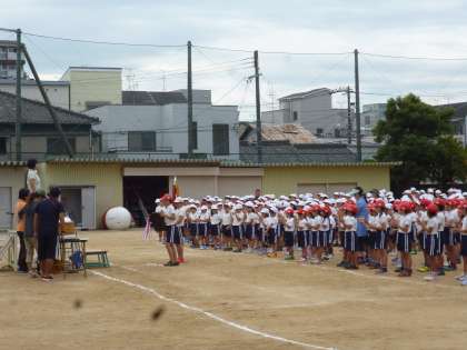 運動会の開会式や閉会式などの全体練習を行いました。国歌・大阪市歌・校歌、体操、全校競技(大玉リレー)、神路音頭などの練習を熱心にしていました。はじめ出にくかった歌声もだんだんに大きくまとまってきました。大玉を送るコツもつかんだようでした。本番、はりきって活躍してくれることでしょう。