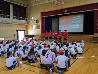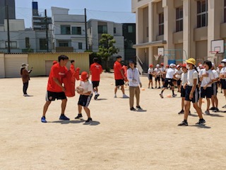 NTTドコモレッドハリケーンズの皆さんをお招きして、5年生でトップアスリートによる夢授業「ラグビー」を体験しました。