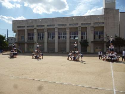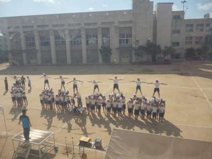 組み立て体操の最後の練習をしました。「がんばっていこう。」という先生からの励ましのことばでスタート。いくつかの大技のタイミングがずれたところもありましたが、うまくきまりました。当日は悔いのないよう練習の成果を出し切ってくれることでしょう。
