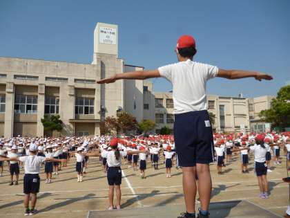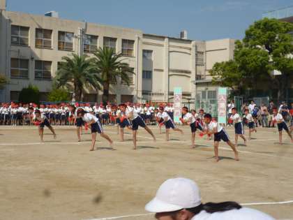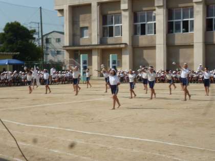 演技に入り、まず準備体操・応援合戦でした。白・赤とも白熱した応援でした。