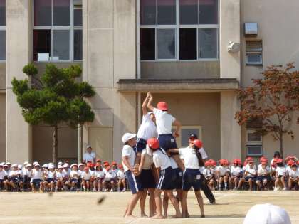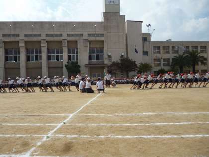 5・6年の団体競技です。5年は綱引き、6年は騎馬戦でした。赤白、熱の入った競技でなかなか勝敗がつかないぐらいでした。特に騎馬戦の一騎打ちは見ごたえがありました。
