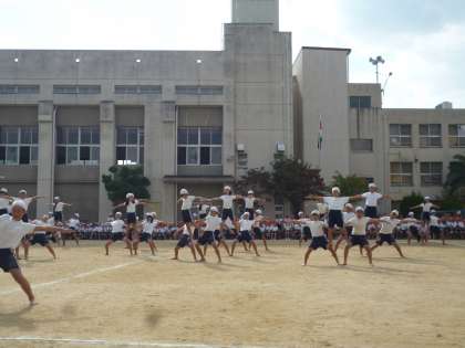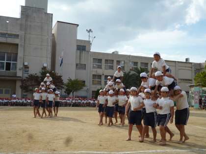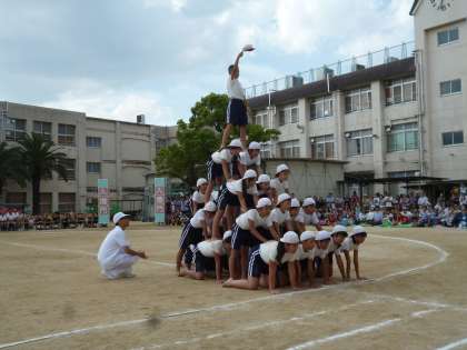 運動会のビッグイベントの一つ、6年生の組体操「SCRUM 夢へのかけ橋」でした。一人一人の力の結晶で見事に演技をやりぬきました。感動を多くの人にあたえてくれました。小学校のよい思い出の1ページになったことでしょう。