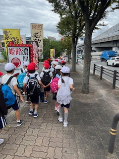 みんなで学校に帰ります。