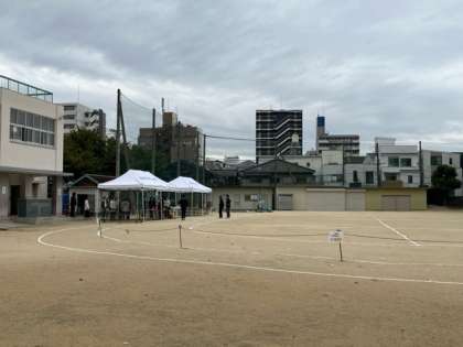 金曜日に雨で準備ができなかった分を、先生たちで朝から準備しています。