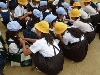 5年生が地域の幼稚園児と交流をしました。来春から1年生になる園児たちを迎えました。手作りの名札を胸につけてあげて、互いに自己紹介をしました。やさしく手をつないで5年生の教室へ向かいました。