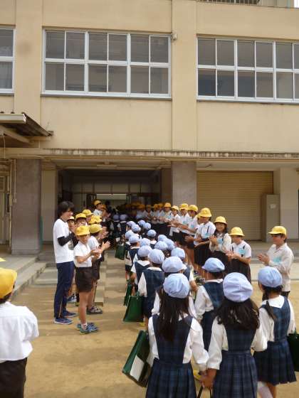楽しく交流した時間はあっという間にすぎ、終わりの会となりました。またの会える日を楽しみに5年生が花道を作って送りしました。