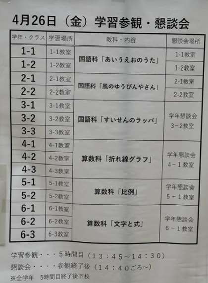 本日の参観・懇談会にご出席いただきありがとうございました。
