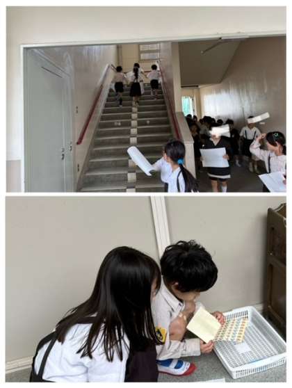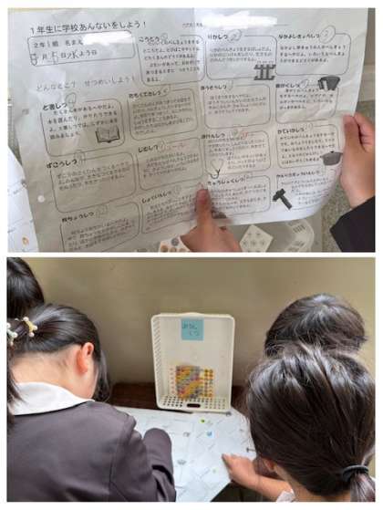 どんなことをする部屋なのか、ペアの1年生にやさしく教えてくれる2年生です。