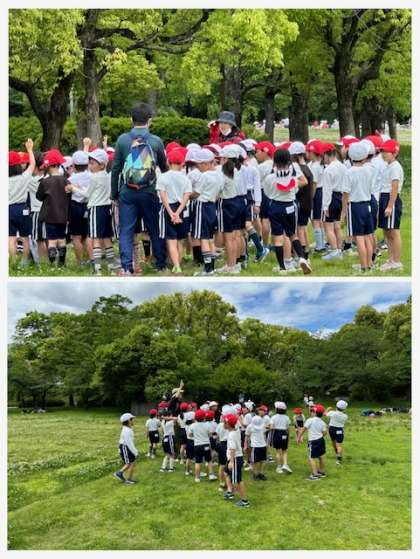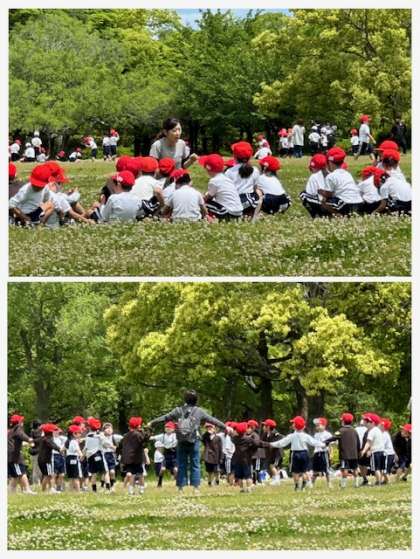 広場では、クラスごとにハンカチ落としやゲームなどで遊んでいました。