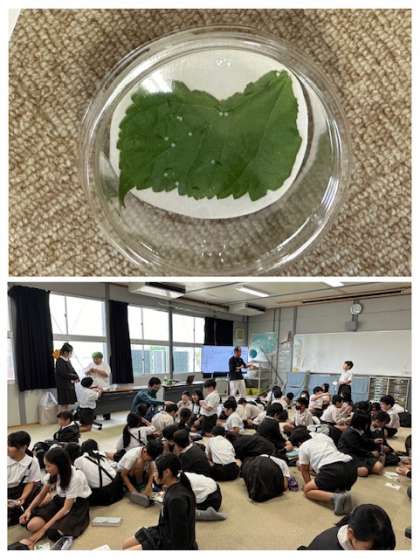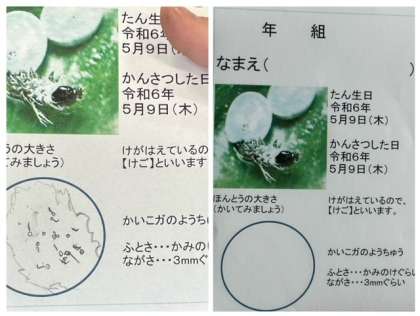 葉に産み付けられた卵は、実際にどんな大きさなのか記録しています。
