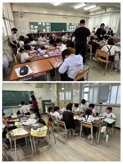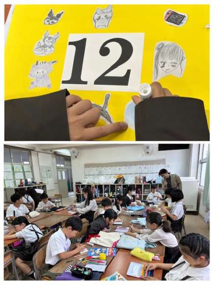 一人ひとりのイラストを貼って、班オリジナルの看板にしています。