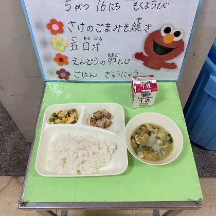今日のえんどうは、調理員さんが1つずつサヤから取り出してくれました◎